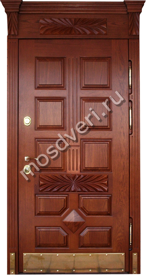 Дверь с отделкой филенчатым МДФ с декоративными элементами — объединяет стильный внешний вид и высокую надёжность.