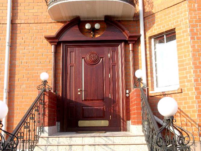 Традиционный дорогой материал с натуральной древесной текстурой и возможностью нанесения на него резьбы.Декорирование стеклянными и витражными вставками.