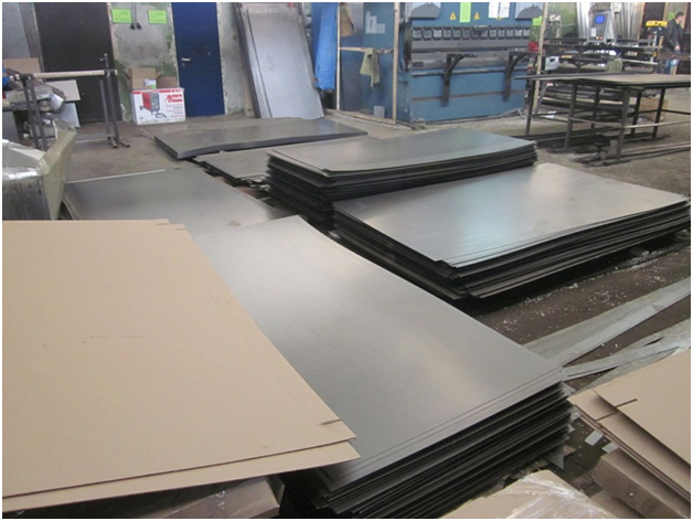 Раскрой и заготовка листа. Металлический прокат делится на необходимые по размеру полотна с помощью специальных гильотинных ножниц, гарантирующих высокую точность и чистоту среза. На готовом листе с помощью пресса проделываются отверстия под всю фурнитуру и запорные системы.