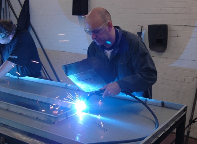 Сварка. Все элементы полотна стыкуются, после чего производится их подгонка. На этом этапе происходит закладка изолирующих материалов, после чего полотно сваривается. В это же время производится сборка и сварка коробки. Затем полотно складывается с ней, и специалист проверяет все параметры, выставляет зазоры. После этого можно приваривать петли и монтировать фурнитуру.