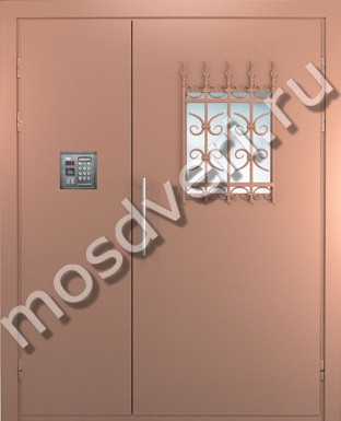 Дверь с домофоном, стеклом и ковкой в Москве