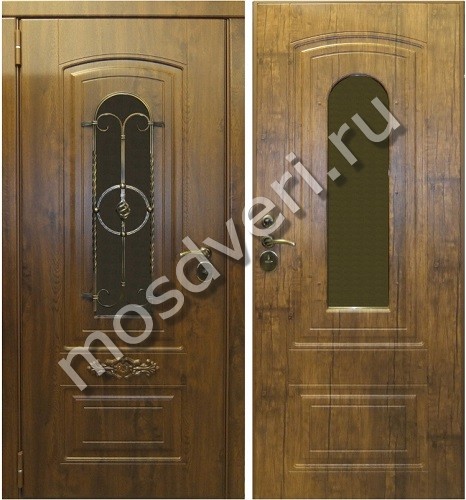 Элитная дверь в загородный дом с ковкой из массива в Москве