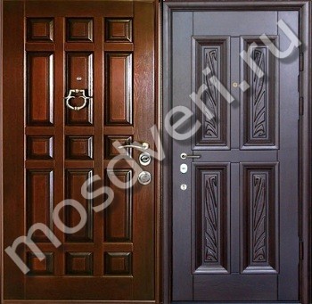 Тёмная элитная дверь в квартиру с отделкой массивом в Москве