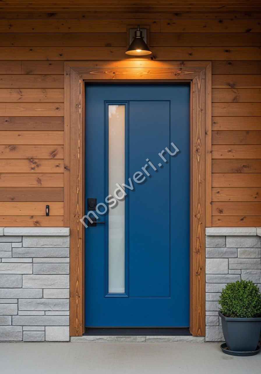 Высокая входная дверь синяя со стеклянной вставкой — объединяет стильный внешний вид и максимальную защиту.